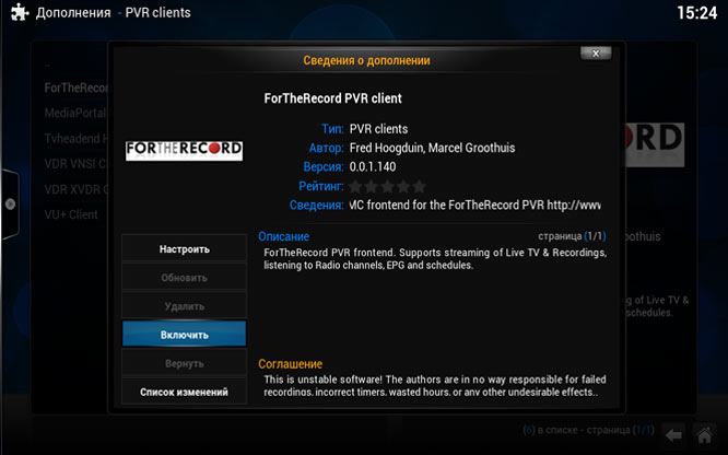 ВНИМАНИЕ, в соответствии с законодательством некоторых стран использование библиотеки декодирования (ffdecsa) является незаконным, декодирование каналов без официальной подписки или каким либо другим способом установленных взаимоотношений с вещателем является незаконным во всех странах. Разработчик не может отвечать за незаконное использование данного продукта.